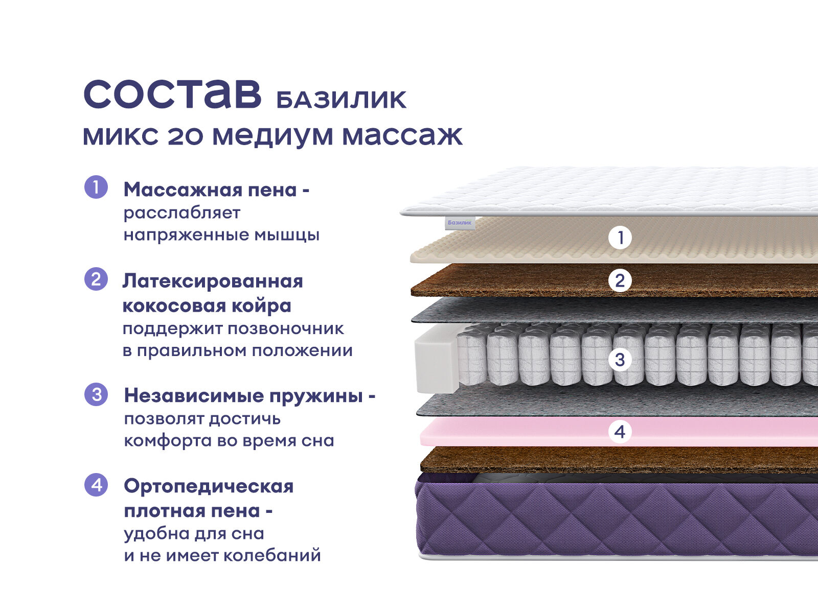 Этот матрас создан для тех, кто ценит ортопедическую поддержку и приятный массажный эффект. Двусторонняя модель с разной жёсткостью и независимым пружинным блоком обеспечивает полноценный отдых и способствует расслаблению. Модель создает правильные условия для здоровья, комфортного расслабления и полноценного сна.
