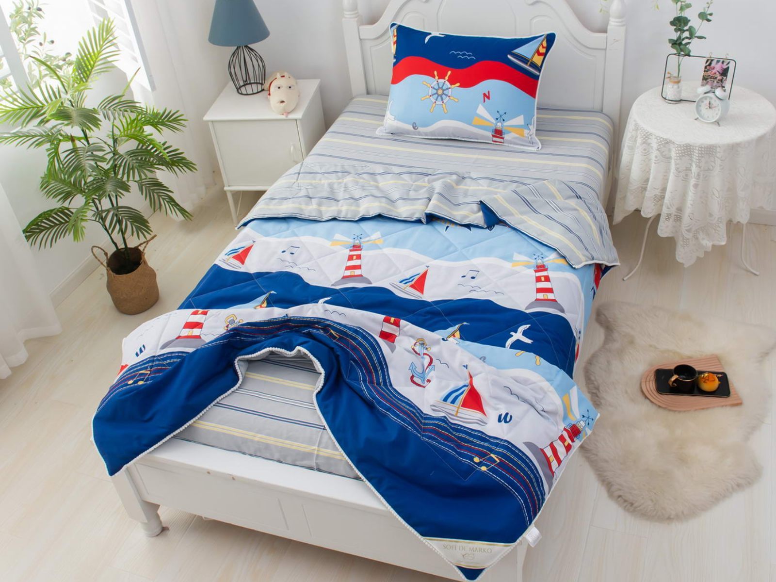 Интернет-магазин СОН.РУ предлагает купить постельное белье с доставкой по Москве . Комплект постельного белья Софи де Марко Маяки с одеялом 1,5-спальный размера 1,5-спальный стоит 15 120 ₽ . На товар действует скидка в размере %. Если у вас есть вопросы по гарантии, доставке и оплате, задавайте их менеджерам нашего кол-центра по телефону: 8 495 545-47-33 .