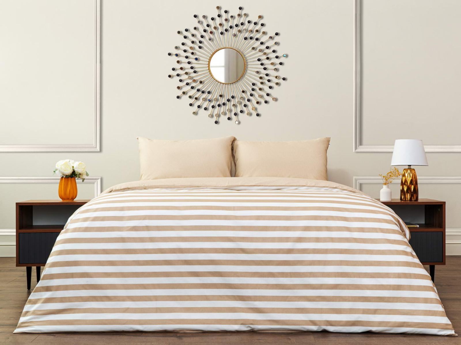 Комплект Мэгги легко стирается в обычной машине в бережном режиме и также легко гладится.