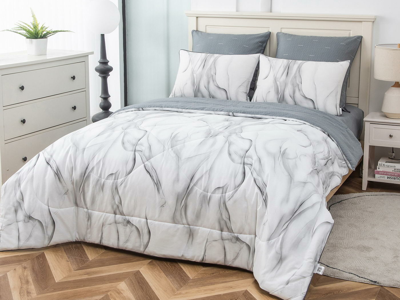 Особенность: двусторонняя модель, наволочки и одеяла декорированы кантом.