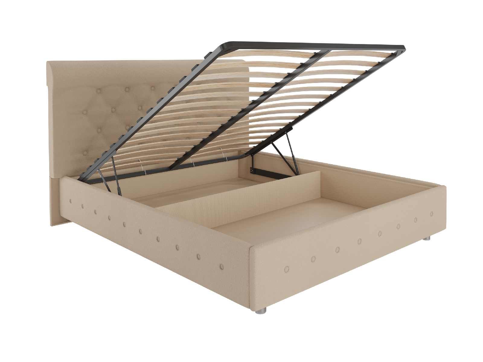 В комплект входит ортопедическое металлическое разборное основание с подъемным механизмом. При желании основание всегда можно поднять и получить доступ к вместительному бельевому ящику. Это дополнительная система для хранения постельных принадлежностей. Она позволит разгрузить шкаф и спрятать сезонные вещи.