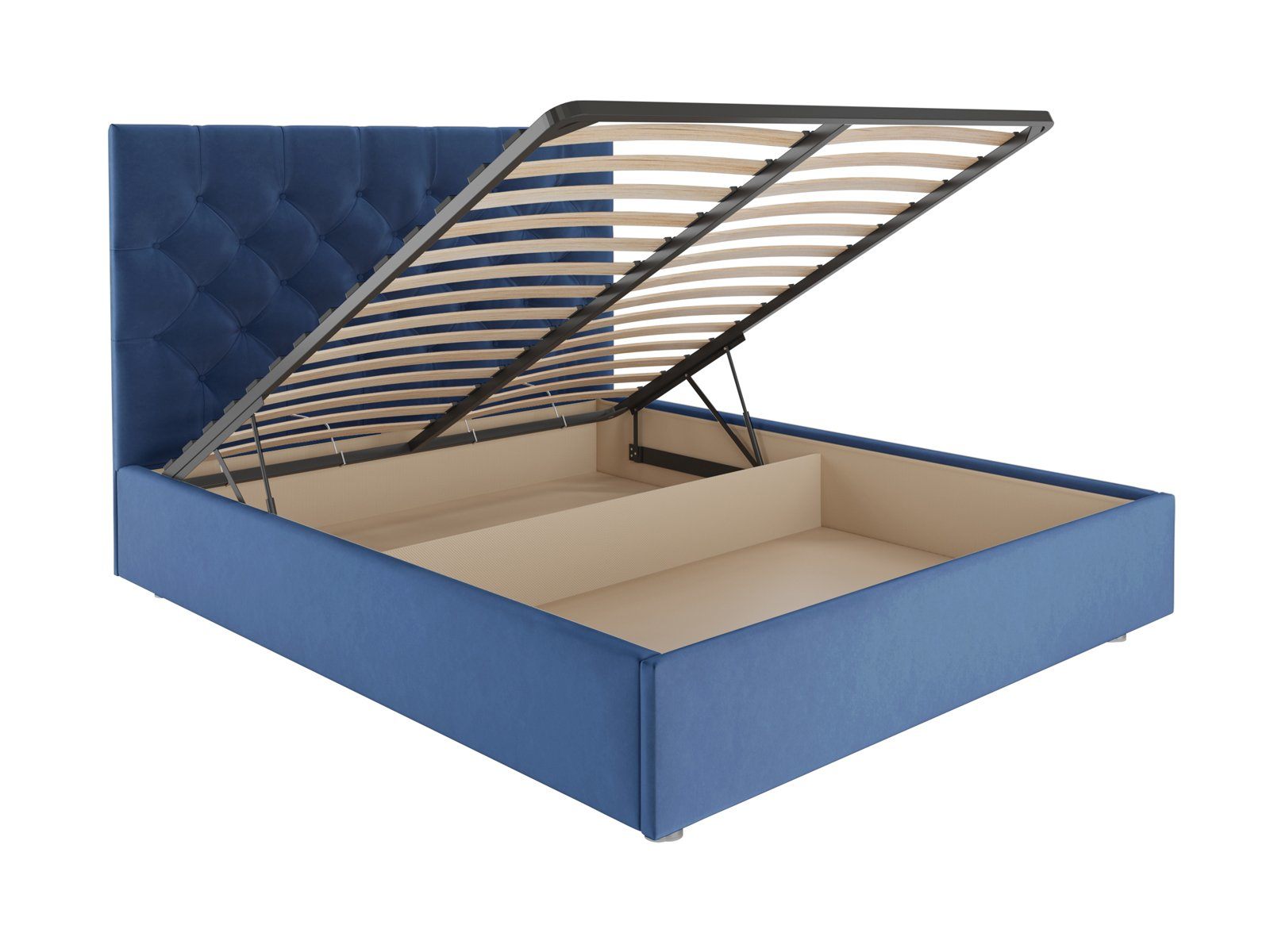 В комплектации с подъемным механизмом кровать имеет вместительный бельевой короб с двумя отделениями.