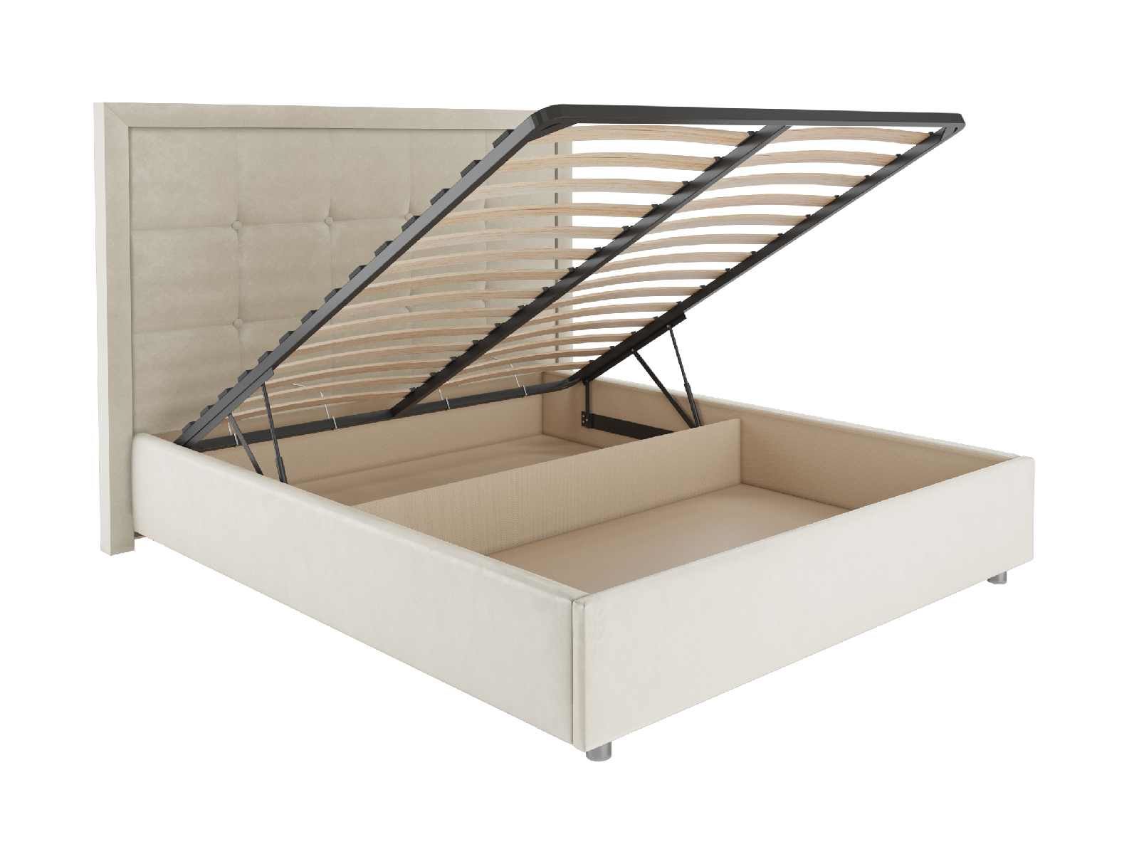 В комплектации с подъемным механизмом кровать имеет вместительный бельевой короб с двумя отделениями.