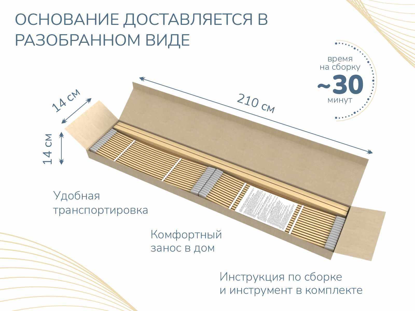 Деревянное основание на ножках для любых беспружинных матрасов и матрасов с пружинным блоком Bonnel и TFK. Рама изготовлена из клееной фанеры из березы сечением 50х25мм. Латы березовые, латодержатели пластиковые. Ножки прямоугольного сечения.