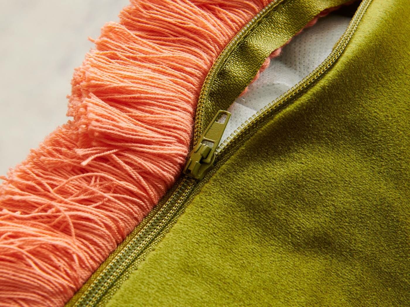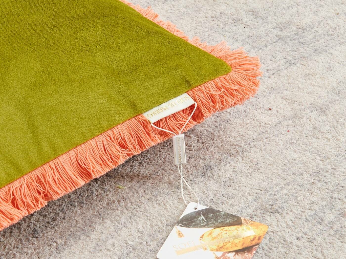 Особенность : с бахромой, потайная молния под цвет вшита в край наволочки.