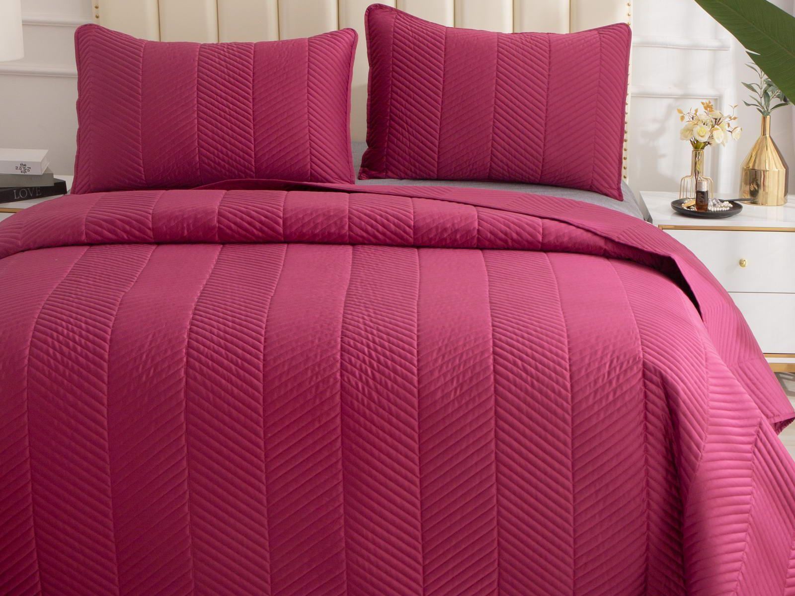 Стёганое дышащее покрывало Адонис на 70% состоит из хлопка и на 30% из вискозы. Ткань изделия гладкая и приятная на ощупь. Декоративный кант и ритмичный «елочный» рисунок, выступающий над поверхностью, придают покрывалу игривый утонченный вид.