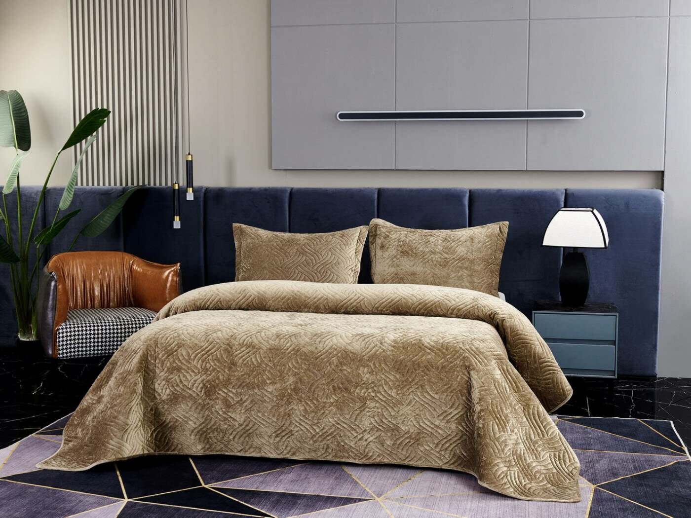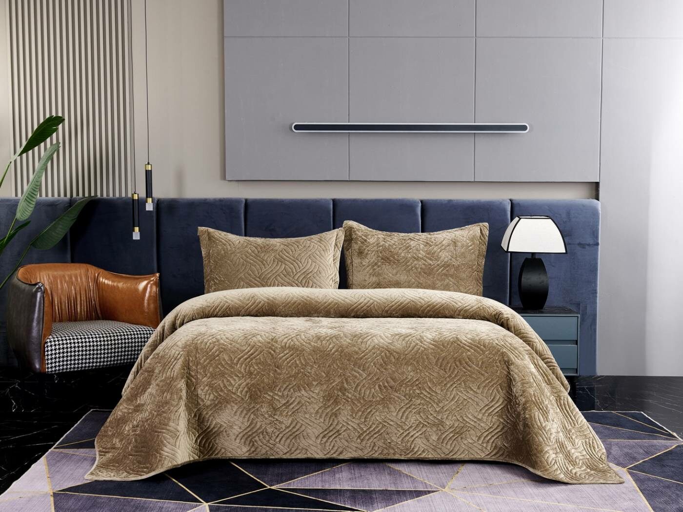 Покрывала «Деварта»: нежность и уют в вашем доме Окунитесь в мир комфорта и изысканности с новой коллекцией мягких бархатных покрывал «Деварта». Эти изделия станут настоящим украшением вашей спальни, добавив ей уюта и элегантности. Покрывала изготовлены из высококачественного бархата, который приятен на ощупь и обладает нежной бархатистой текстурой. Они устойчивы к износу и надолго сохраняют свой привлекательный внешний вид, яркость цвета и мягкость. Благодаря прочной и качественной декоративной стёжке «косичка» наполнитель надёжно зафиксирован внутри изделия. «Деварта» представлена в пяти оттенках: от тёплого бежевого до спокойного серо-голубого. Вы сможете подобрать идеальный вариант для вашего интерьера. Размерный ряд включает два варианта, что позволяет выбрать покрывало, которое идеально подойдёт для вашей кровати или дивана. В комплект входят две наволочки размером 50х70 см. Каждое покрывало аккуратно обшито кантом, а наволочки украшены милыми ушками шириной 5 см. Это придаёт изделиям особый шарм и делает их ещё более привлекательными. Не упустите возможность приобрести эти замечательные покрывала и создать в своём доме атмосферу тепла и уюта. «Деварта» подарит вам не только эстетическое наслаждение, но и незабываемые ощущения при каждом прикосновении.