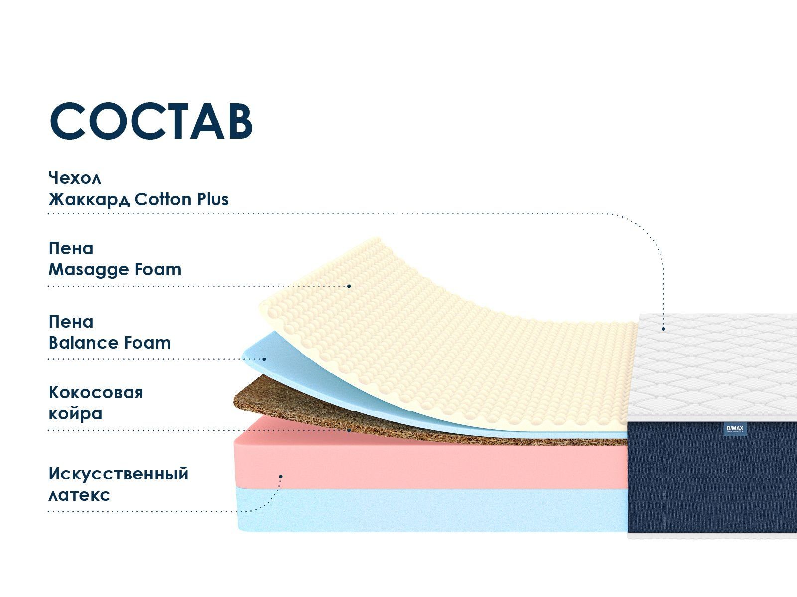 Димакс Практик 24 Кокос Массаж — универсальный беспружинный матрас с массажным эффектом и двойной жёсткостью сторон. Средняя и повышенная жёсткость позволяют выбрать комфортный вариант для отдыха, а массажная сторона дарит расслабление после тяжёлого дня.
