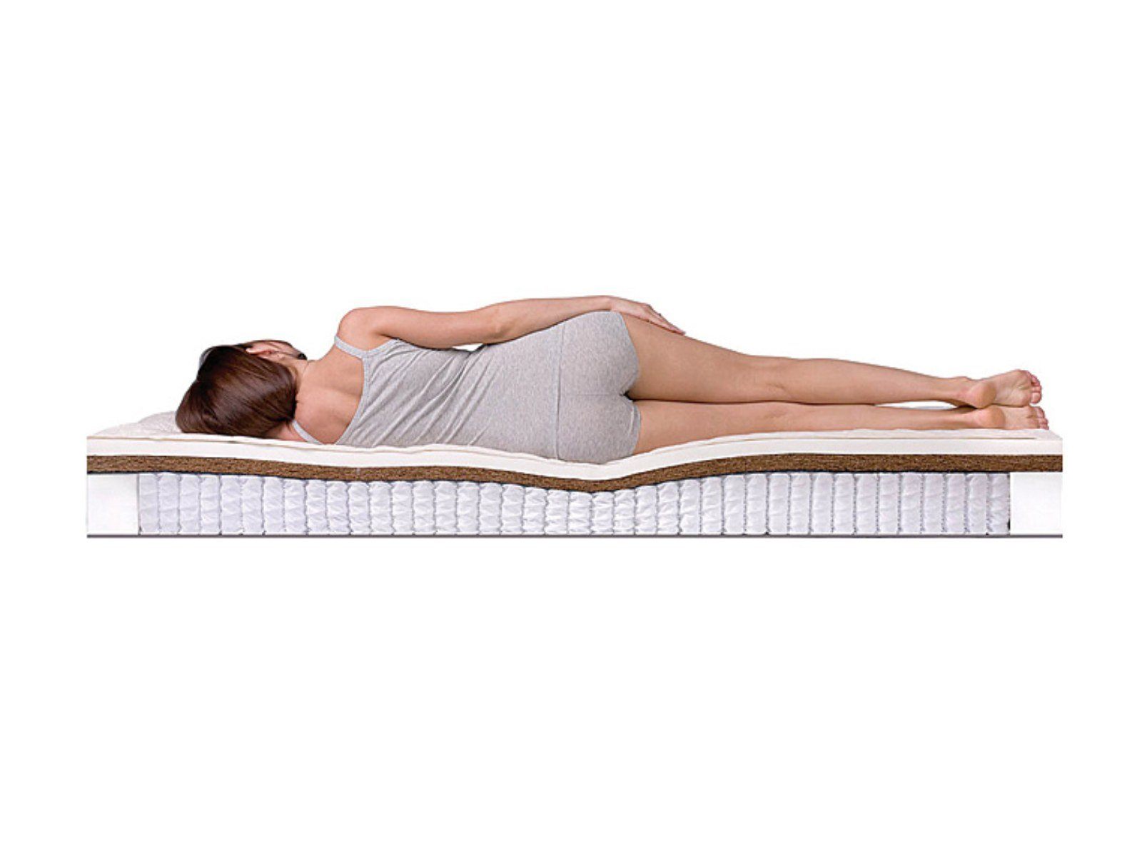 Матрас Prime Mix S1000 достаточно высокий (26 см) и выдерживает большие нагрузки (до 140 кг на спальное место). Модель сконструирована на пружинном модуле, в котором установлено 530 не соединенных между собой пружин, позволяющих равномерно распределять нагрузку по поверхности. В качестве наполнения используется по слою латексированной кокосовой койры и натурального латекса с обеих сторон, причем с одной стороны верхним слоем является койра, что придает ей жесткость выше средней, а с другой сверху располагается латекс - эта сторона имеет среднюю жесткость. Матрас Prime Mix S1000 оснащен чехлом из хлопкового жаккарда, простеганного на антиаллергенном холконе 250 гр./м2, в который можно бесплатно вшить смотровую молнию.