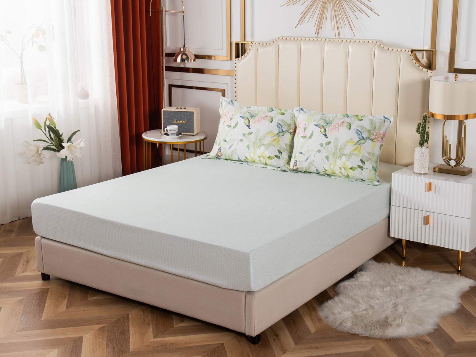 Комплект постельного белья из простыни и наволочки изготовлен из высококачественного сатина. Этот материал обладает рядом важных свойств: он плотный, мягкий, его почти невозможно смять. Еще одно немаловажное качество сатина - его гипоаллергенность. Поэтому он идеально подходит для детей и людей, страдающих аллергией.